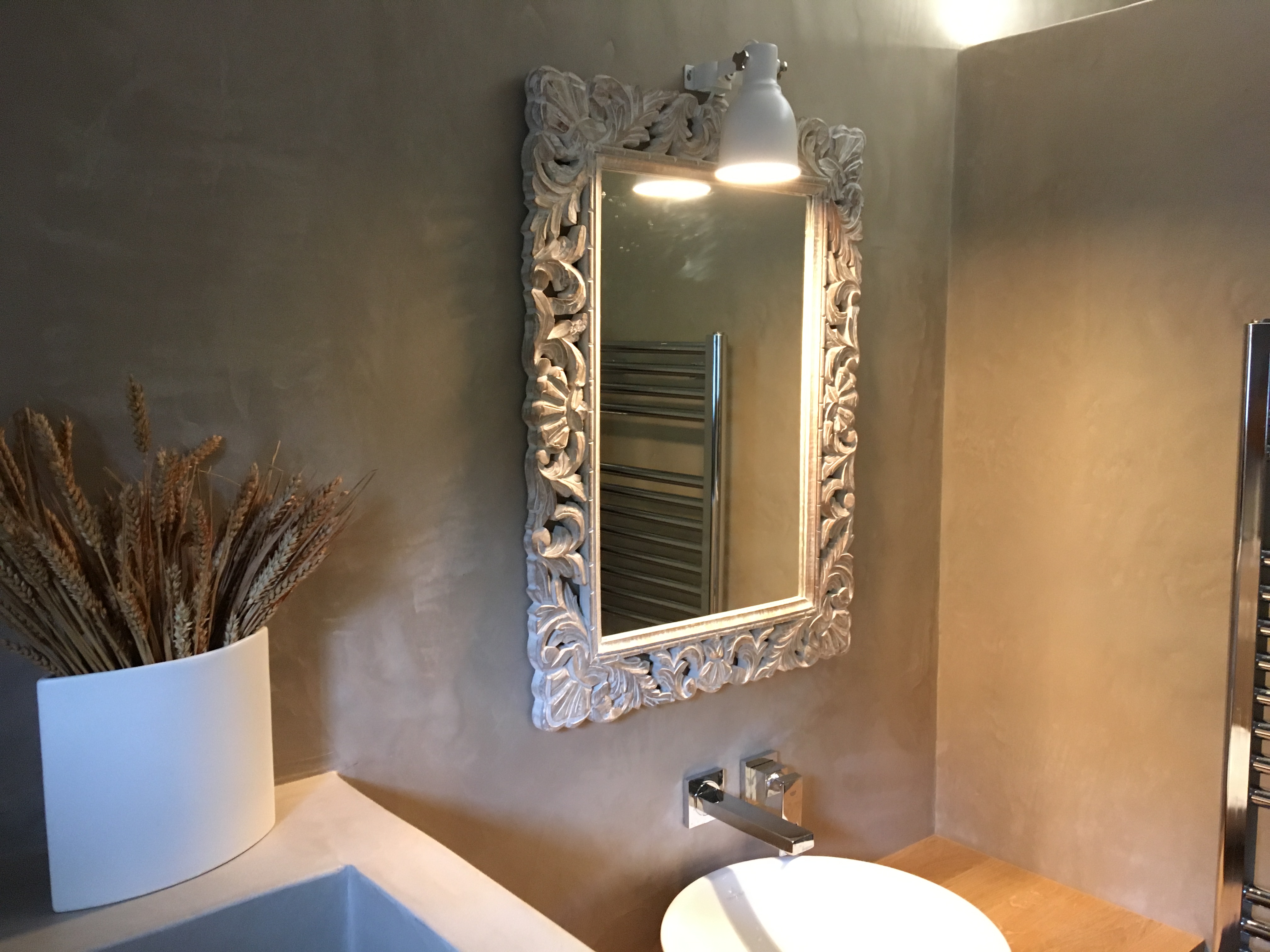 Le Mortex est très intéressant, car nous pouvons le travailler de différentes façons afin de lui donner un aspect style Tadelakt ou Stucco .